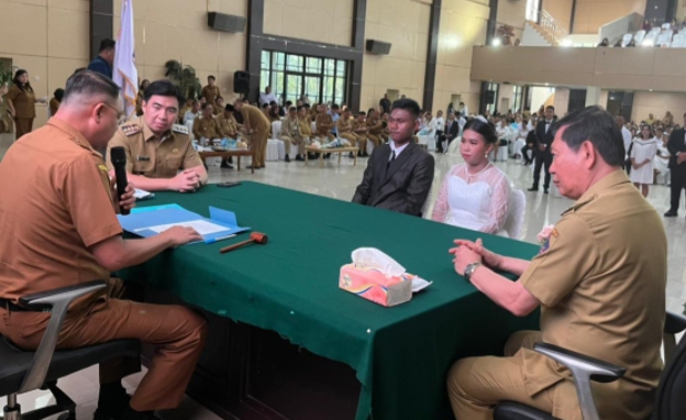 Dalam kegiatan tersebut, Kabupaten Kepulauan Sangihe mengikutsertakan 6 pasang pengantin yang secara resmi dinikahkan dan dicatatkan sebagai pasangan suami istri. Betempat Digraha Gubernuran Bumi Beringin Manado. Selasa (14/10) 2025.