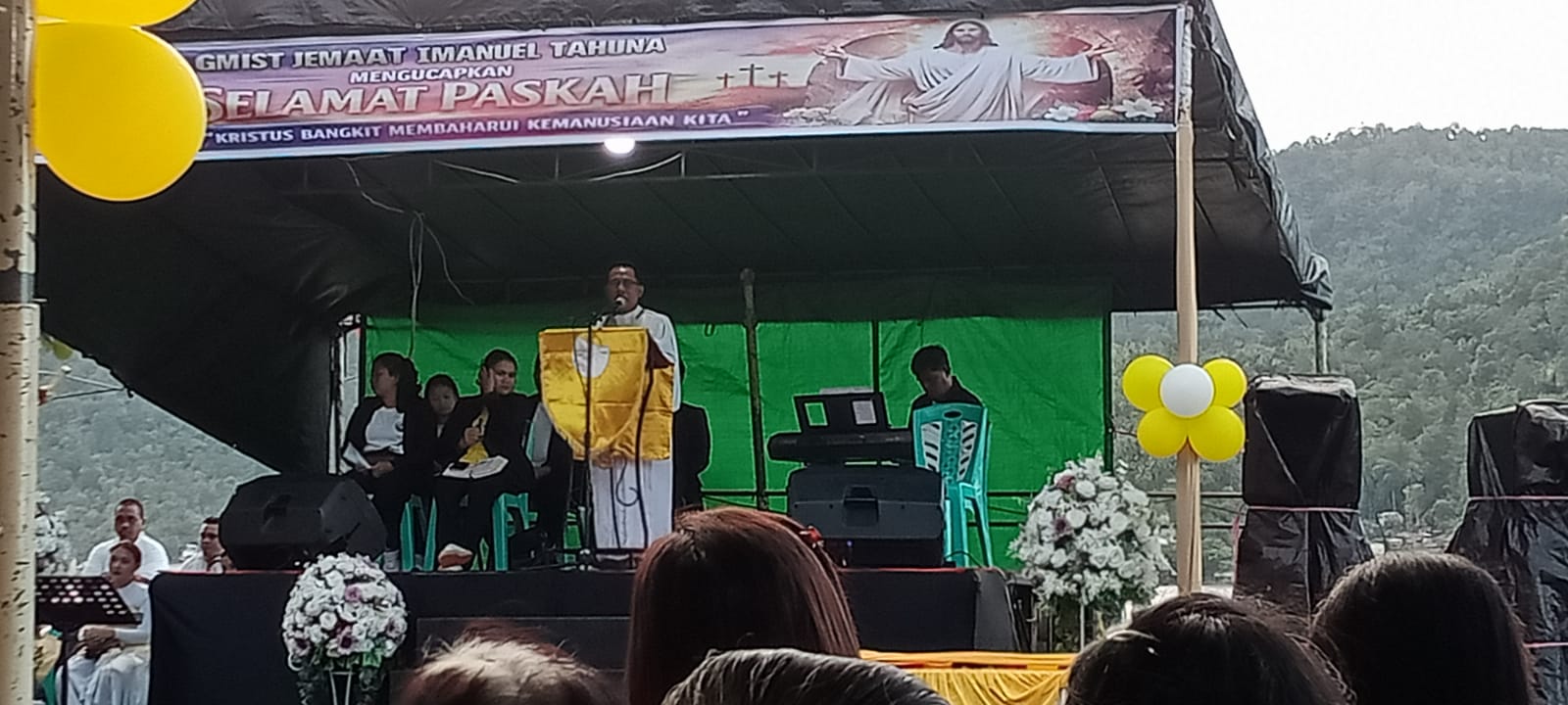 Tahuna (SUARA BANUAKU) – Jemaat Imanuel Tahuna merayakan Paskah dengan penuh sukacita dalam ibadah yang digelar di kawasan boulevard Tahuna, subuh Minggu (5/4).